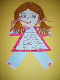enfeitar a nossa ÁRVORE DE NATAL com bonequinhos decorados pelos pais (foi dado um modelo de menino e um de menina). Em comum: o registo de uma mensagem de natal portadora de um sentimento, de uma boa ação, do reconhecimento de boas práticas... A colaboração foi imediata e surpreendente quer pela imaginação quer pelas bonitas mensagens enviadas.