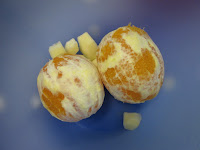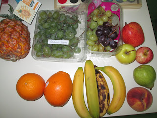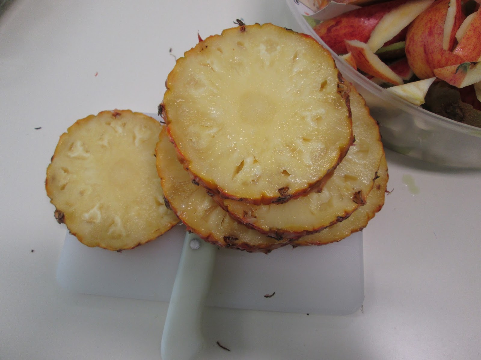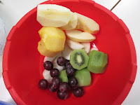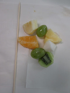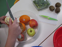 De casa trouxemos fruta. Depois descascamos e cortamos.