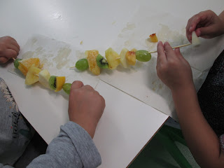 De seguida foi fazer espetadas para o lanche da manhã.